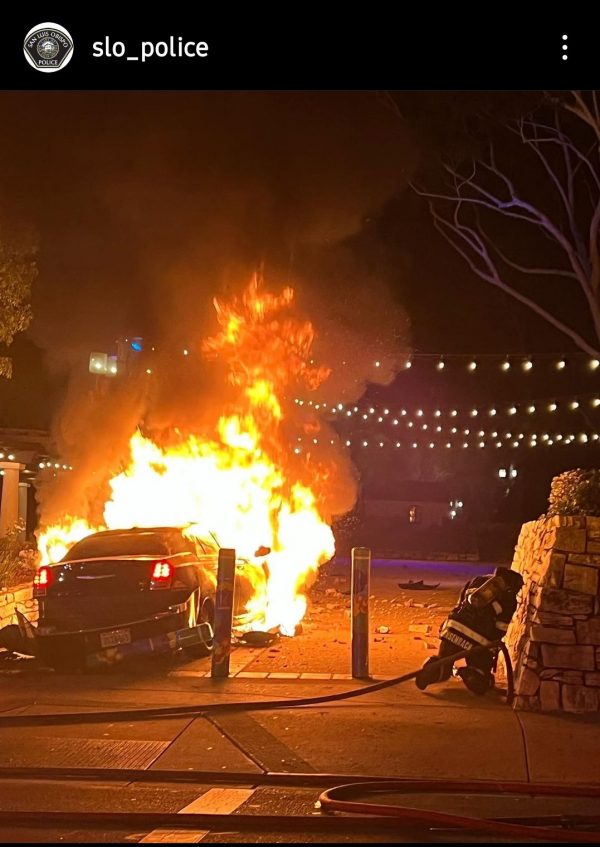 Early this morning morning, a car crashed into the San Luis Obispo Mission Plaza. A black sedan ran over a roadblock pillar by the Chorro and Monterey street intersection and crashed into the plaza. After crashing, the vehicle erupted in flames. The fire was put out within 20 minutes. Firefighters on the scene told KSBY-TV…