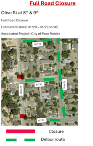 Paso Robles public works has announced two upcoming closures for Scott and Olive street.